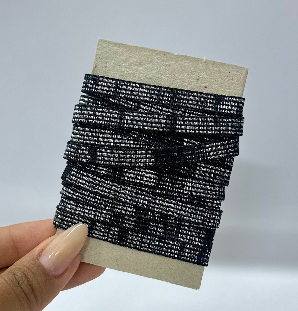 Elástico Chato Lurex 7mm – COR PRETO COM PRATA (2 metros)
