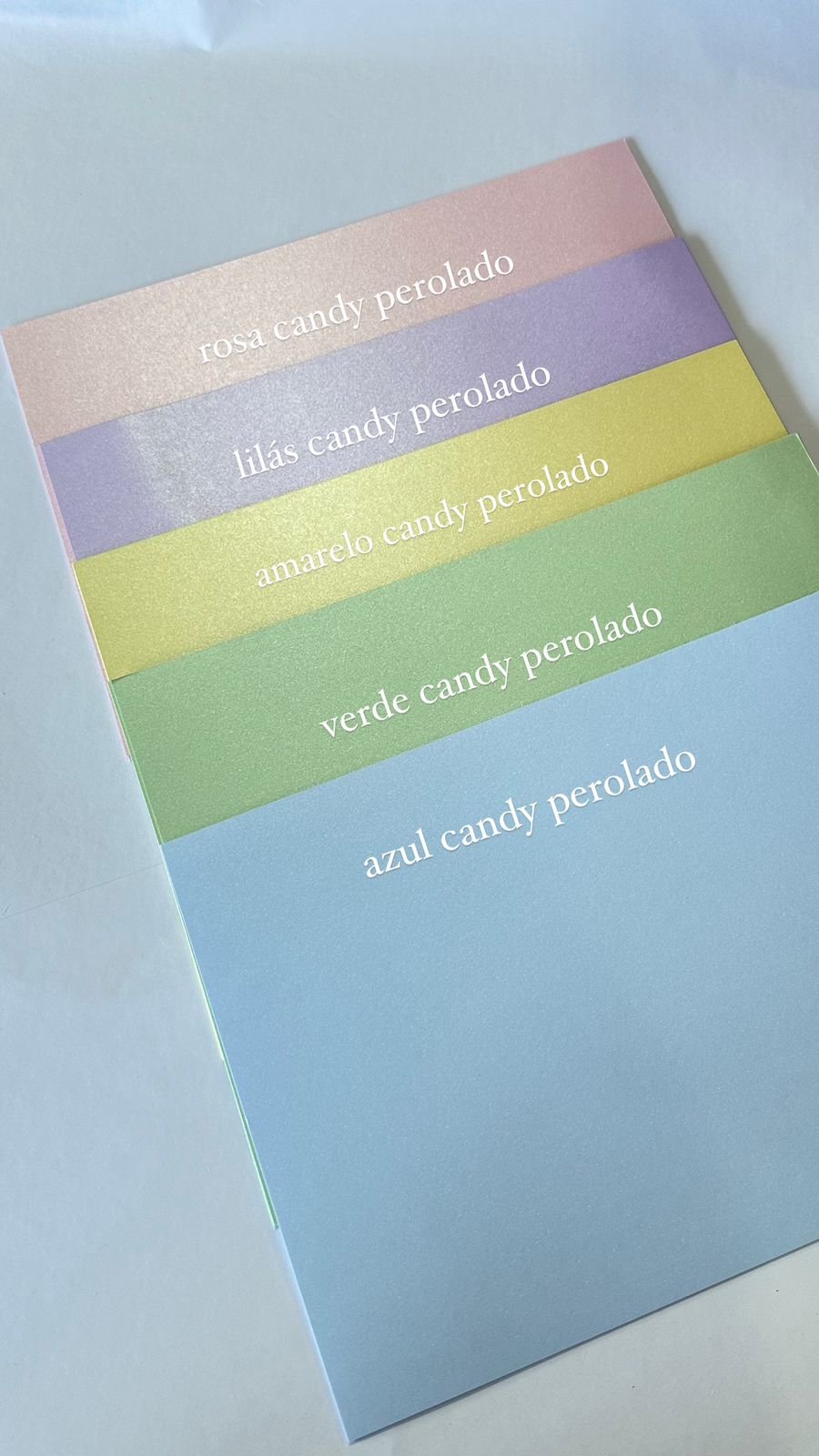 Kit composto por 10 folhas sendo 2 de cada cor: Azul Candy, Rosa Candy, Lilás Candy, Amarelo Candy e Verde Candy.
