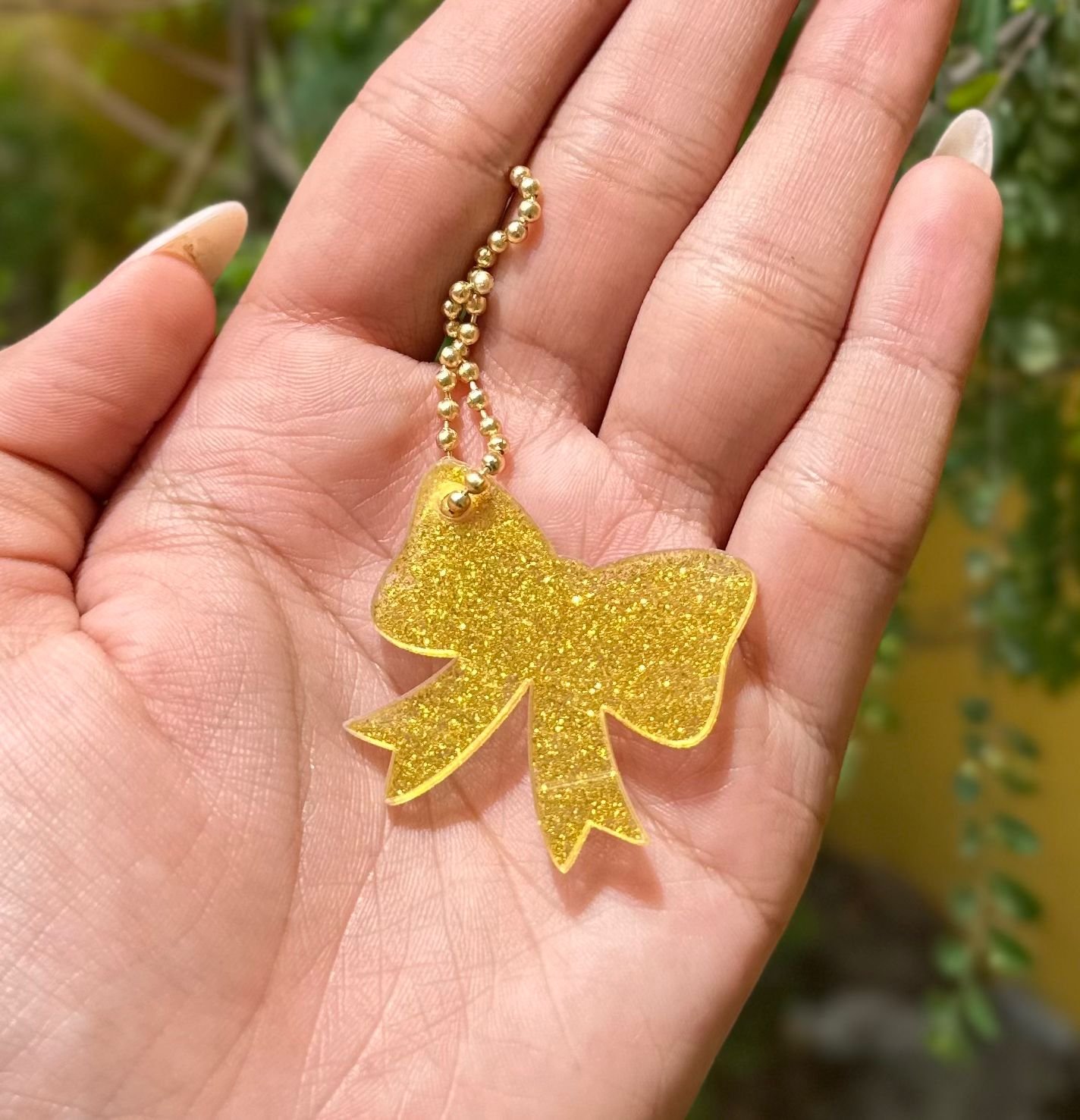 Pingente Acrílico – Laço Dourado Glitter (5un)