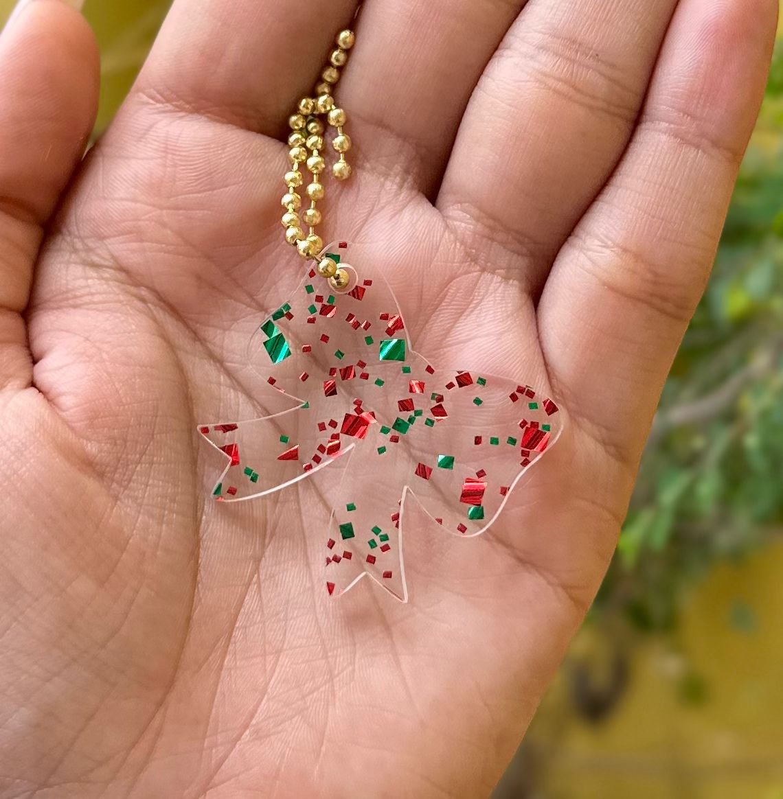 Pingente Acrílico – Laço Transparente Confete (5un)